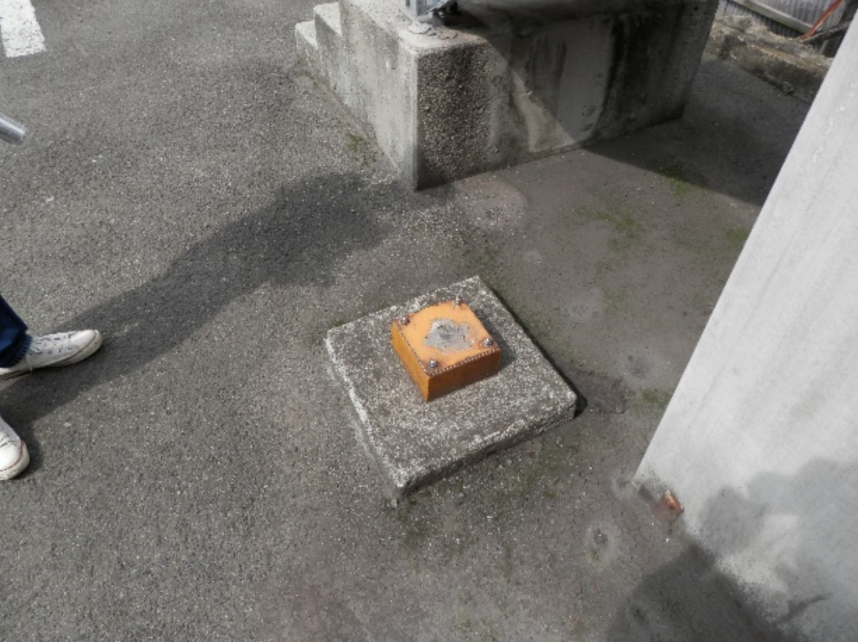 県立図書館の駐車場で発見したホットスポットは、地面直上で空間線量率が5 μSv/hほどありました。そして、他にも同じような条件の場所にホットスポットがあるだろうと市立図書館へ行くと、こちらでは9~10 μSv/hのホットスポットが見つかりました。土壌を測定すると、県立図書館採取分は13万~29万 Bq/kg、市立図書館採取分からは22万~43万 Bq/kgの放射性セシウムを検出しました。