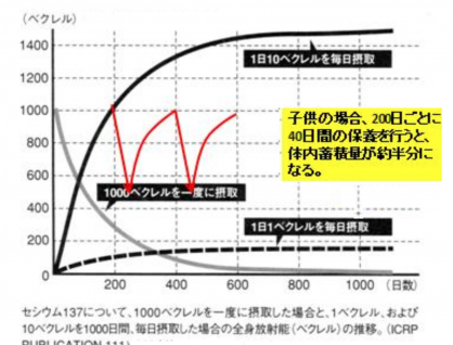 例え、汚染食品をとらざるを得ない状況の子供たちでも、一定期間ごとに、非汚染食品をとれる環境においてやれば、確実に体内蓄積量は減るのである。