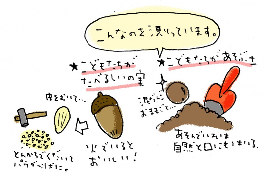 それからは、お母さんたちと園内の土や木の実のベクレル測定とデータ公開をする有志の会を結成し、放射能についての小さな勉強会やお話会、上映会などを開催したりしていました。