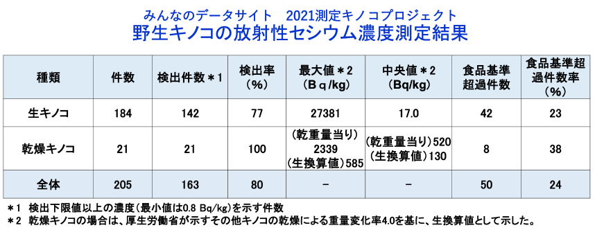 2021年キノコ測定プロジェクト 測定結果まとめ