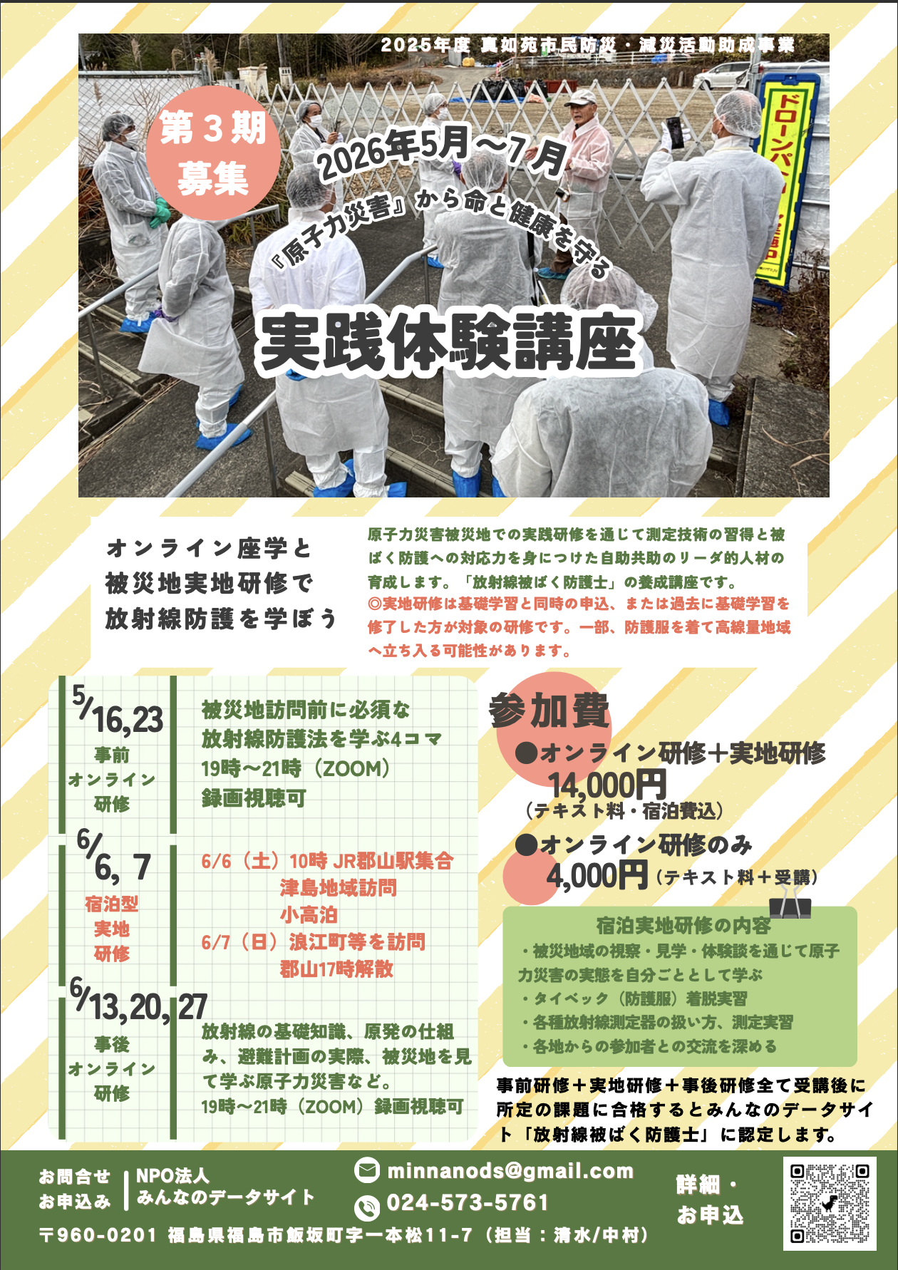 ◎基礎学習と同時の申込、または過去に基礎学習を修了した方が対象の研修です。一部、防護服を着て高線量地域へ立ち入る可能性があります。