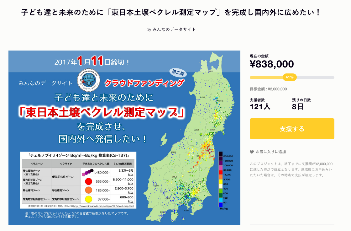 「みんなのデータサイト」は2017年3月をめどに、無料測定による「東日本土壌ベクレル測定プロジェクト」を終えます。(引き続き有料での測定は続けます)