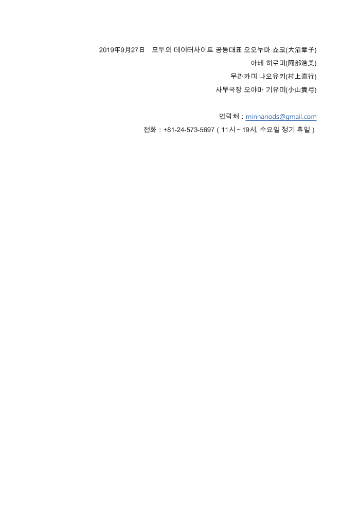 その日本語版の申し入れ書、韓国語版の申し入れ書の画像を掲載します。