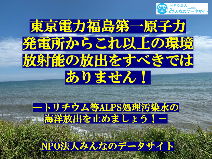 【抗議文】 東京電力福島第一原子力発電所からこれ以上の環境放射能の放出をすべきではありません! ―トリチウム等ALPS処理汚染水の海洋放出を止めましょう!-