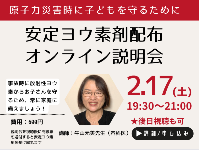 【2/17開催・アーカイブ配信あり】安定ヨウ素剤配布オンライン説明会をおこないます