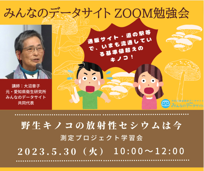 【5/30 ZOOM講座】野生キノコの放射性セシウムは今〜キノコプロジェクト測定報告会のお知らせ