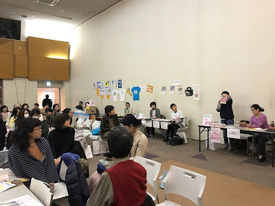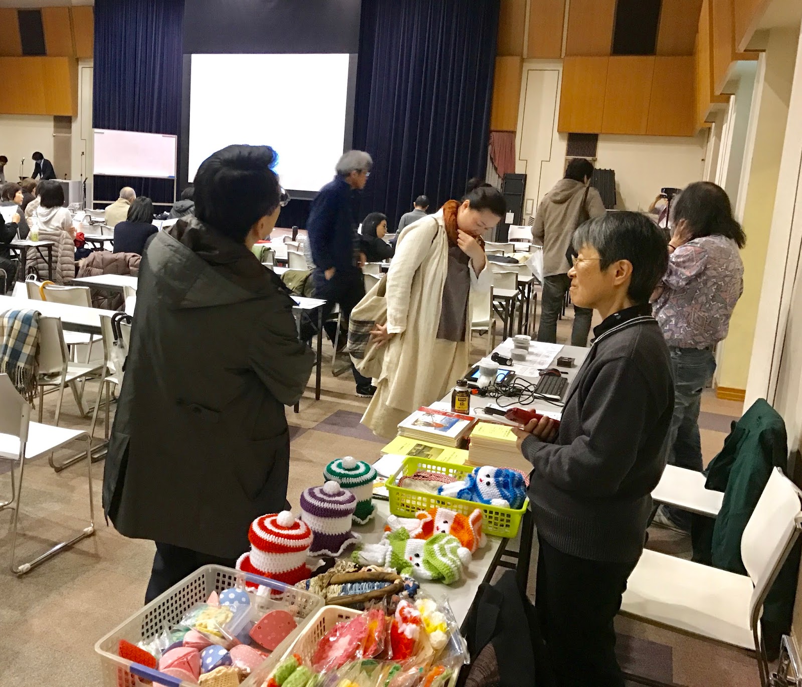 11の団体の自己紹介と当日販売や展示しているもののPRなどをしていただいた後に、交流タイムを持ちました。多くのブースにお客様がお立ち寄りいただき、DVDや冊子、雑貨などの購入や相談が活発に行われました。