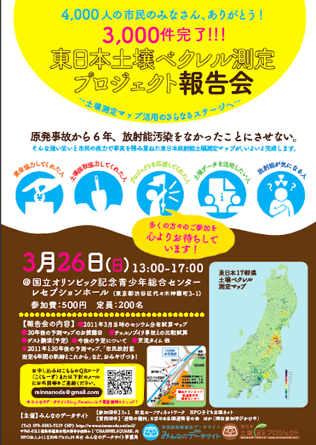 2017年3月26日、代々木オリンピックセンターにて『ありがとう!3,000件 東日本土壌ベクレル測定プロジェクト報告会』を開催しました。