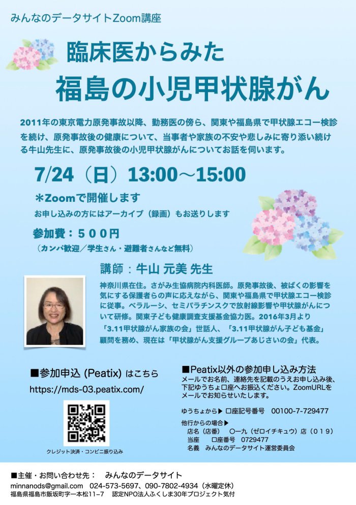 【7/24・オンライン】臨床医からみた福島の小児甲状腺がん