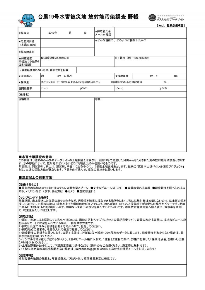 *なお、台風19号による氾濫泥の放射能調査を希望される方は以下リンク先の要領をお読みの上、採取を行ってください