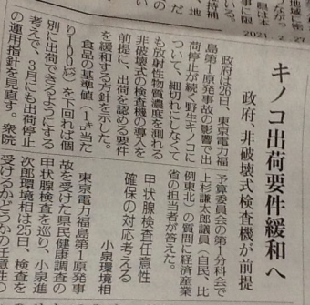 さらに、事故から10年を迎える今、「出荷できないキノコが多い」ことを「風評被害のせいだ」として、逆にこの100ベクレルの規制値を緩め、100ベクレルを超えるセシウムを含む食品を流通させようと、自民党の中にプロジェクトチームができました。これに対し、私たち市民放射能測定室は、出荷制限するかしないかを決める規制値を上げることに断固反対し、オンライン署名運動を開始しました。規制値緩和に対する市民放射能測定室、消費者の声を届けます。是非ご取材いだけますようお願いします。