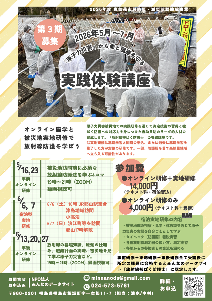 【参加者募集】第3期 原子力災害から身を守ろう!放射線被ばく防護士養成講座