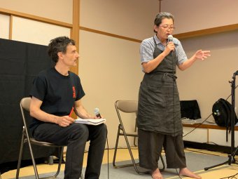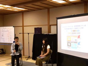 そのあと、アーサーさんとデータサイトの中村によるトークで、みんなのデータサイトについてと、マップ集ができた経緯など紹介をさせていただきながらアーサーさんとトークをしました。