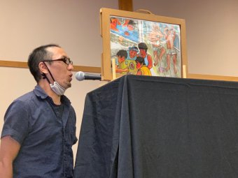 それから原爆で亡くなった子どもたちの遺品が「8月6日のあの日」を語る写真絵本『さがしています』や、丸木位里・俊さん作の壮大な「原爆の図」をもとにした紙芝居『ちっちゃい こえ』の実演がありました。