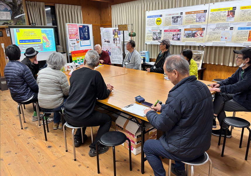 ご協力くださった方々:福島原発事故津島被害者原告団長今野秀則さん、津島地区出身で記録誌「100年先の子孫たちへ」編集委員会 副編集長の今野邦彦さん、「おれたちの伝承館」館長中筋純さん、市民測定所「とどけ鳥」所長白髭幸雄さん、双葉屋旅館小林友子さん、ヒロシマ・ナガサキ・ビキニ・フクシマ伝言館 安斎育郎さん・丹治杉江さん、古滝屋当主・原子力災害考証館館長 里見喜生さん、そして3日間同行してくれた浪江町元原発作業員の今野寿美雄さんほか、多くの方に協力いただき、大変実りの多い研修をすることができました。改めて感謝申し上げます。