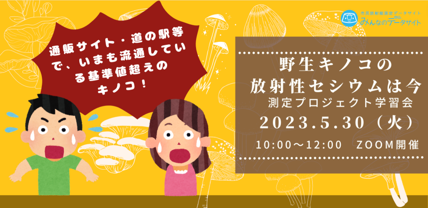 | 内容 | 2011年の東京電力福島原発事故から12年が過ぎ、食品の放射能汚染についてはもう大丈夫!? こたえは、残念ながらいいえです。 スーパー等で手に入る野菜や果物、お米等の食品については、ほとんどが不検出となっていますが、 一方で 今後数十年に渡って東北・関東を含む広範囲の地域で基準値を大幅に超える恐れがあり、採取・購入・食べることに注意が必要な食品もあります。 その代表的なものが「野生のキノコ」と「山菜」です。 今回は、そろそろ採れはじめる「野生のキノコ」について、昨年もみんなのデータサイトが取り組んできた市場調査「キノコ測定プロジェクト」の取り組みについて紹介し、またその測定結果をお伝えしながら皆さんと考えていく時間にしたいと思います。 ●どうして国が検査しているのに、基準値を超える食品が流通してしまっているの? ●どのあたりの地域のキノコに 気をつけなくてはいけないの? ●キノコの種類によって、放射能の濃度の濃淡に傾向があるの? ●もし基準値超えの食品を発見した場合は、どうしているの? ●いつ頃まで放射能汚染に気をつける必要があるの? ●野生ではない栽培キノコや椎茸は・・? このような質問にもお答えします。参加すれば、野生のキノコの放射能汚染について詳しくなり、余計な被ばくを避けることができるようになりますよ! 生産者・出品者の方もぜひ参加して、ご自身が出品する野生のキノコが食品衛生法違反にならないよう、学んでいただければと思います。 後半には質問・交流タイムも取りたいと思います。 お誘い合わせの上ご参加ください! 講師: みんなのデータサイト共同代表 大沼章子(おおぬま しょうこ) 未来につなげる・東海ネット 市民放射能測定センター(C-ラボ) 所長 参加費:500円(カンパ歓迎)*無料枠もございます! *いただいた参加費やカンパは、みんなのデータサイトの運営に大切に活用させていただきます |