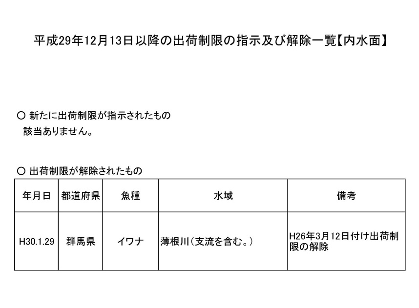 当時の出荷制限が、ほとんど解除されていないことがわかります。解除されたのは、わずかにひとつです。