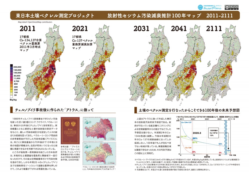 東日本土壌ベクレルプロジェクト 放射性セシウム汚染 減衰推計100年マップのダウンロードはこちらからネリ。